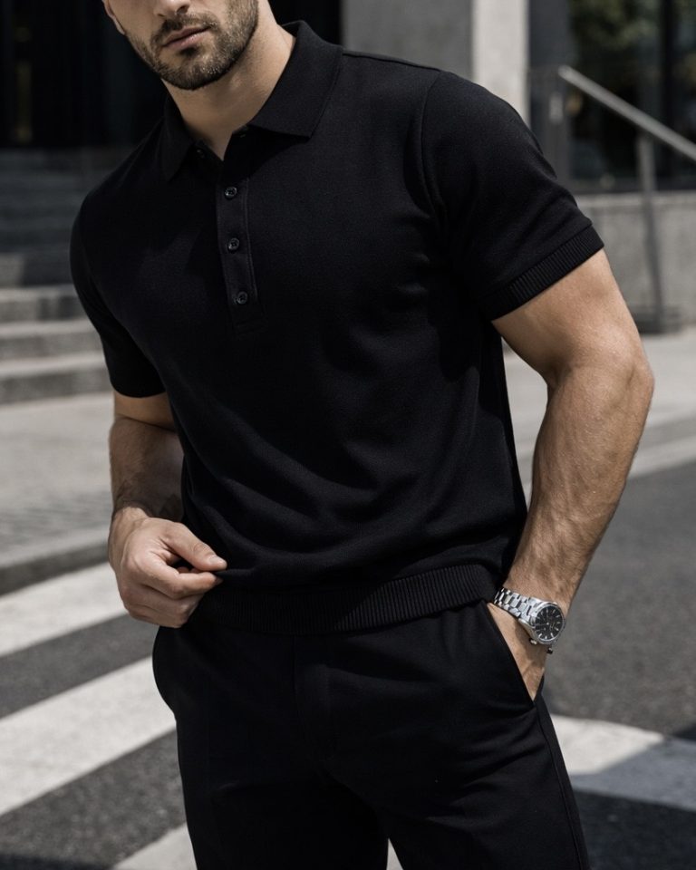 Black Knit Polo Shirt