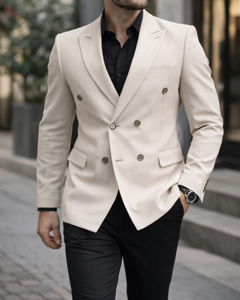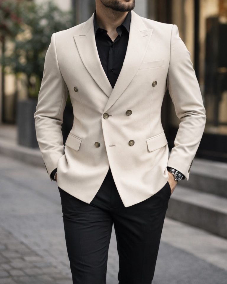 Beige Double-Breasted Blazer