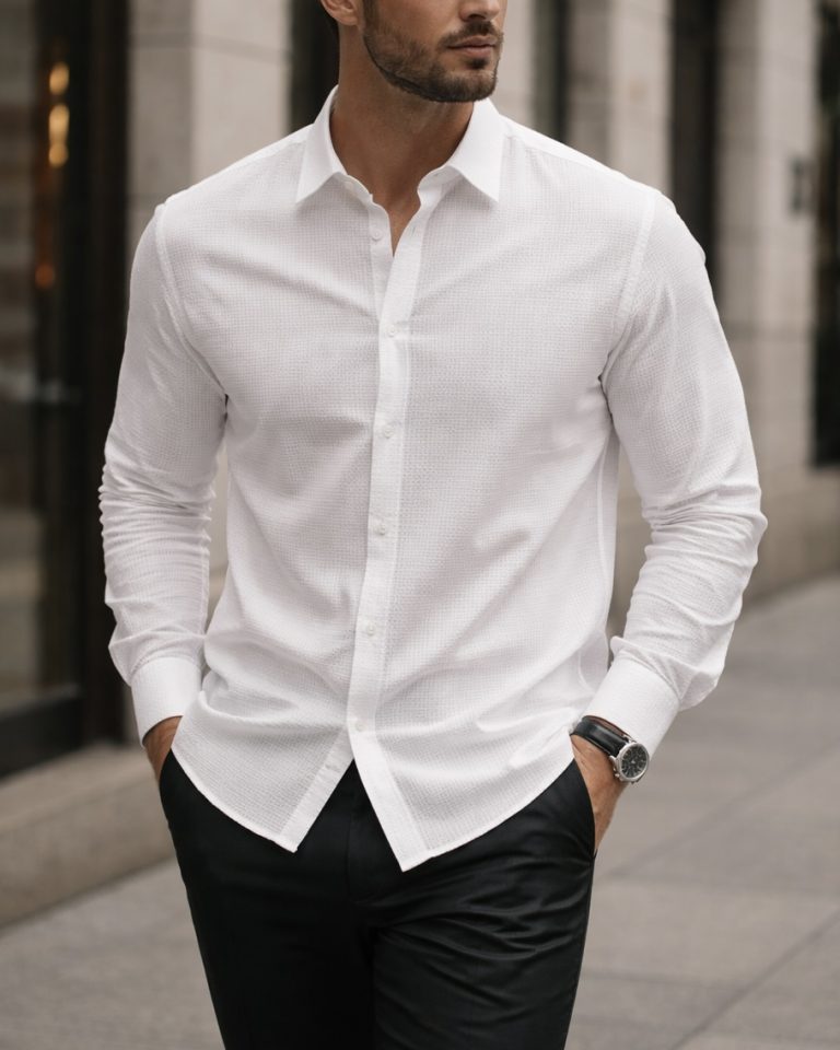 White Textured Slim Fit Shirt