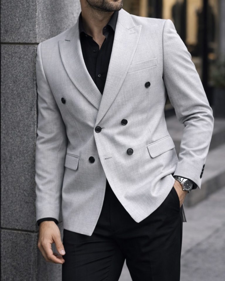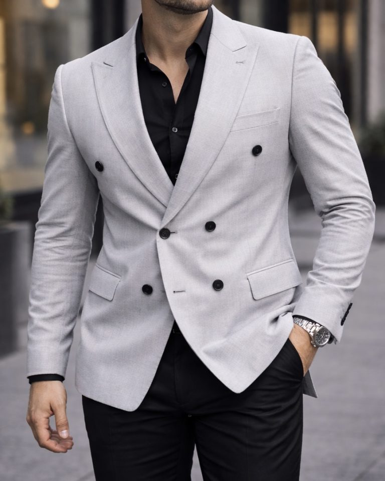 Ivory Grey Double-Breasted Blazer