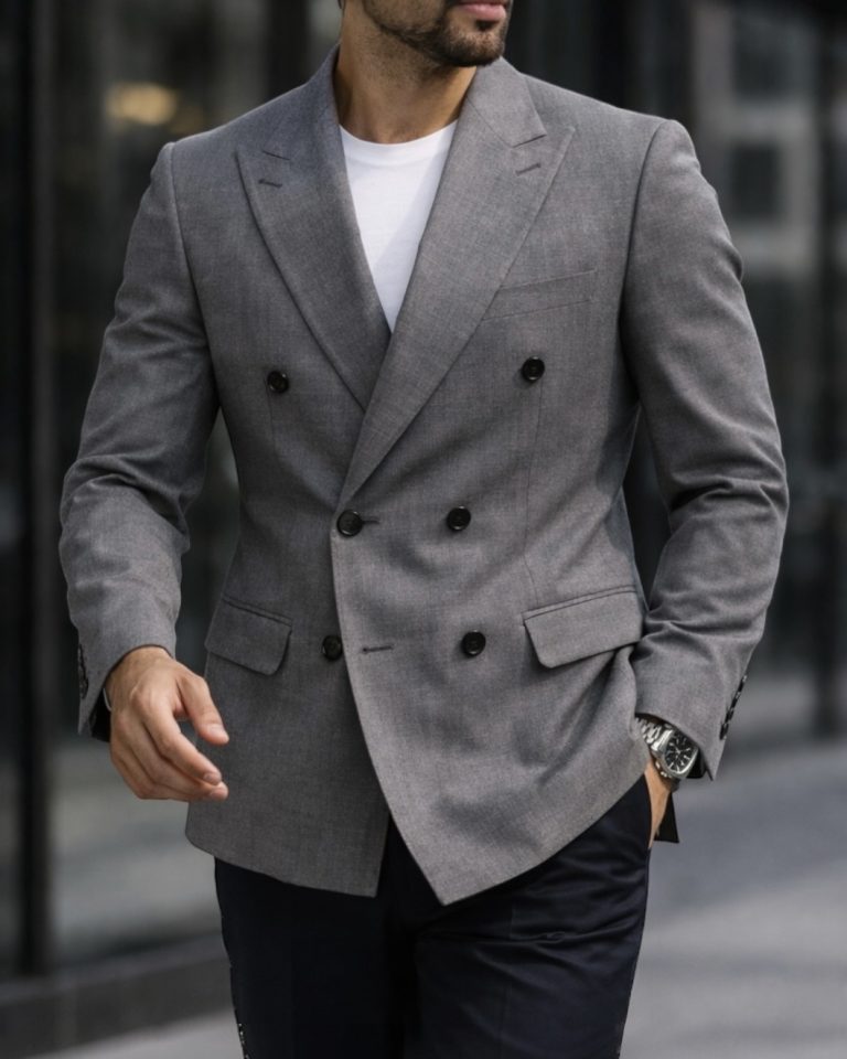 Grey Double-Breasted Blazer