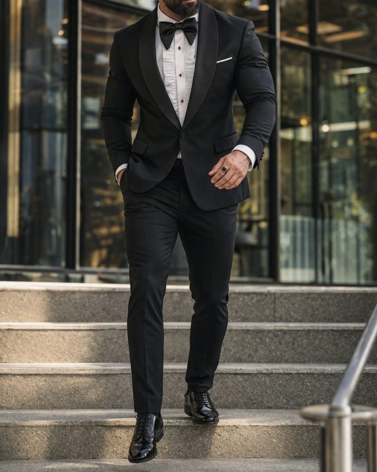 BLACK TUXEDO SET – SATIN LAPEL EDITION