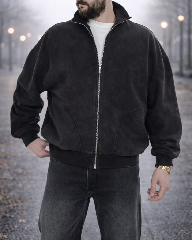 FULL ZIP SWEAT JACKET – DARK GREY