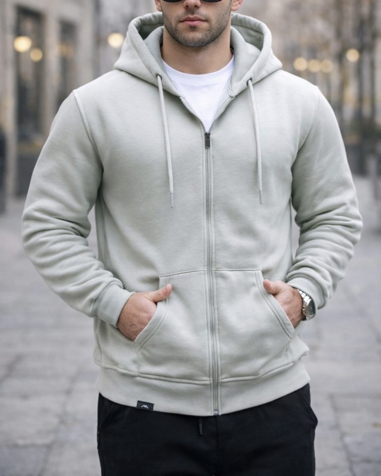 Zip-Up Hoodie – Sage Green / Light Green