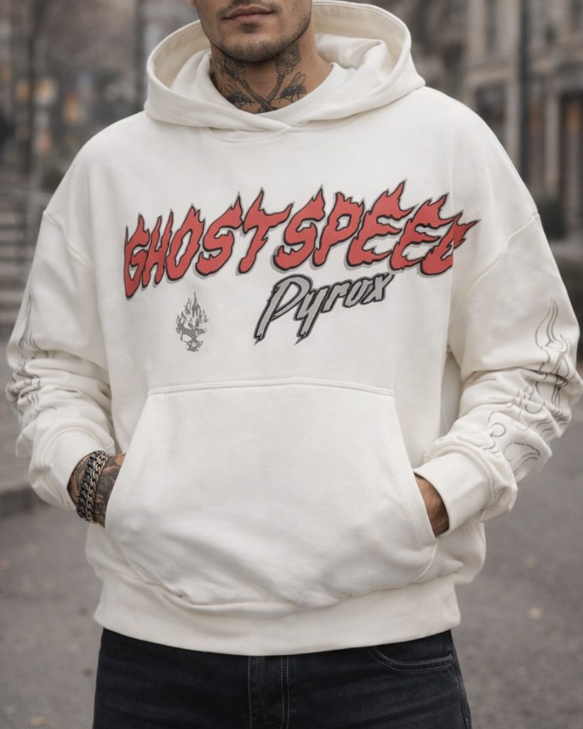 Graphic Hoodie – White “Ghost Speed Pyrex”
