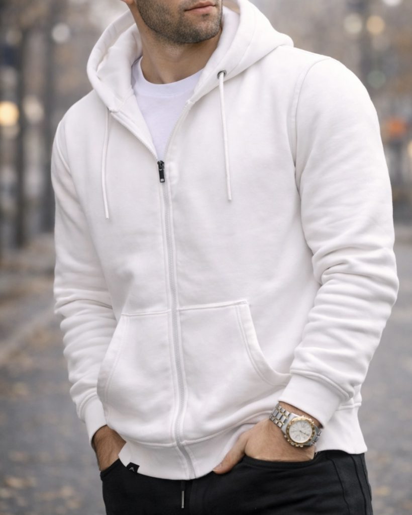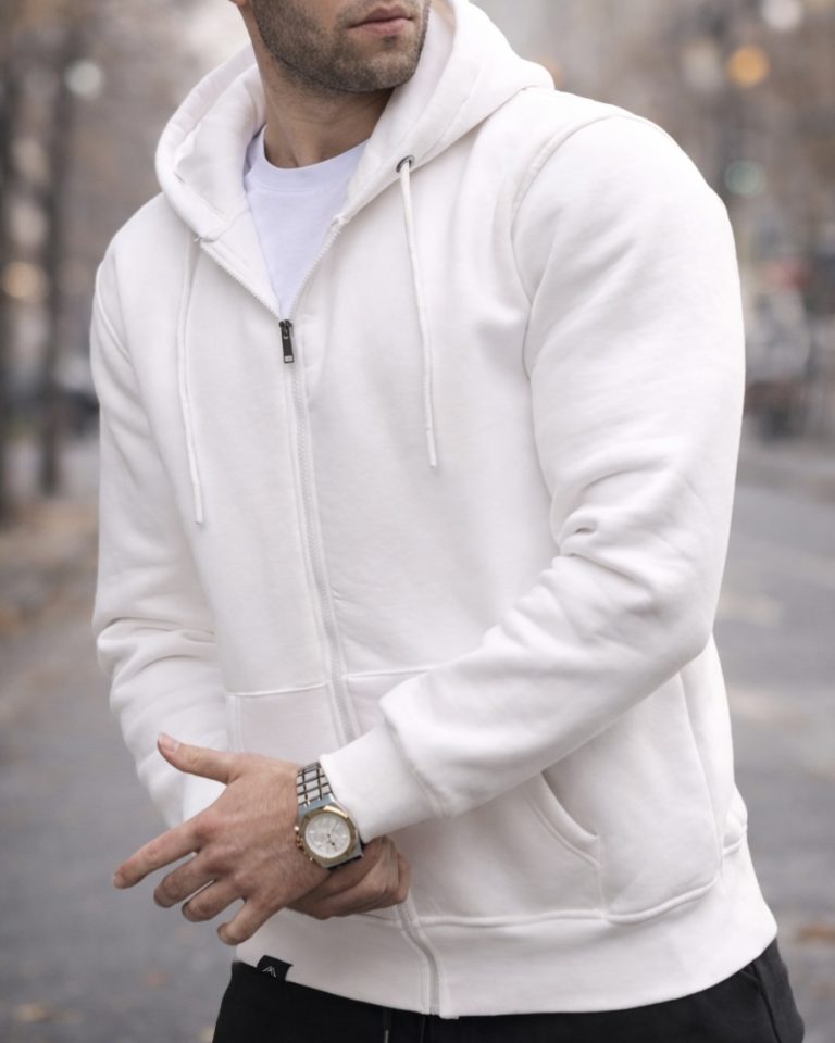 Zip-Up Hoodie – White