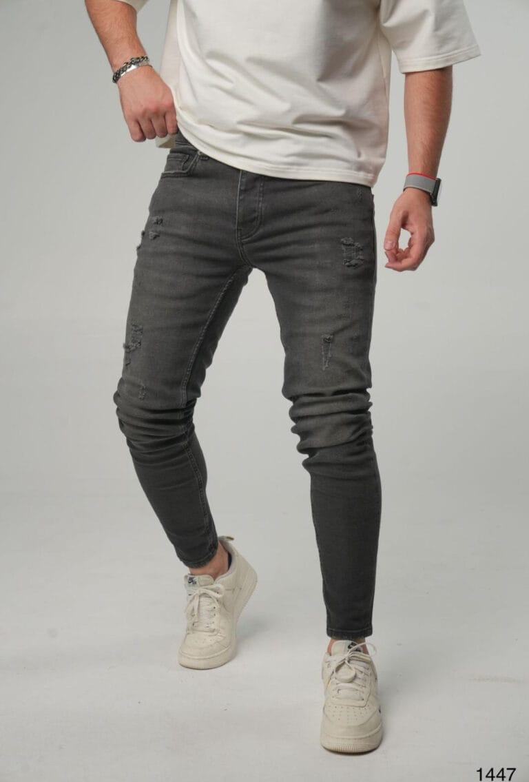 SKINNY FIT JEANS – MID BLUE DISTRESSED