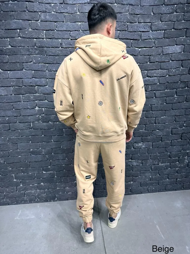 Zip-Up Hoodie Tracksuit – Beige