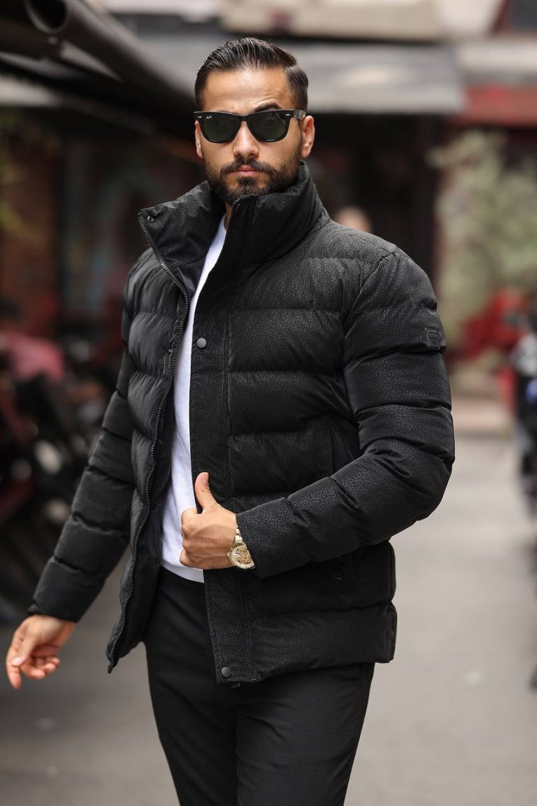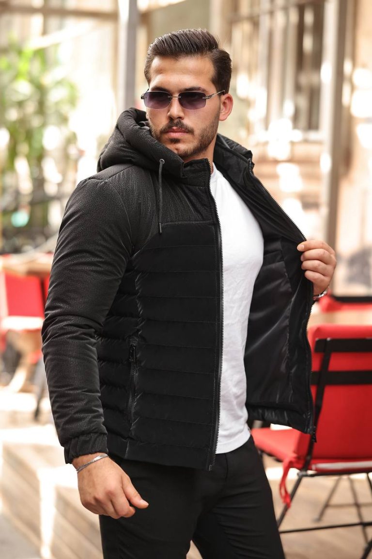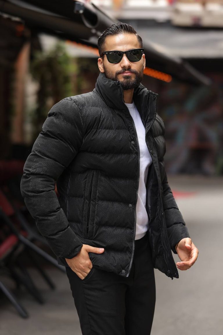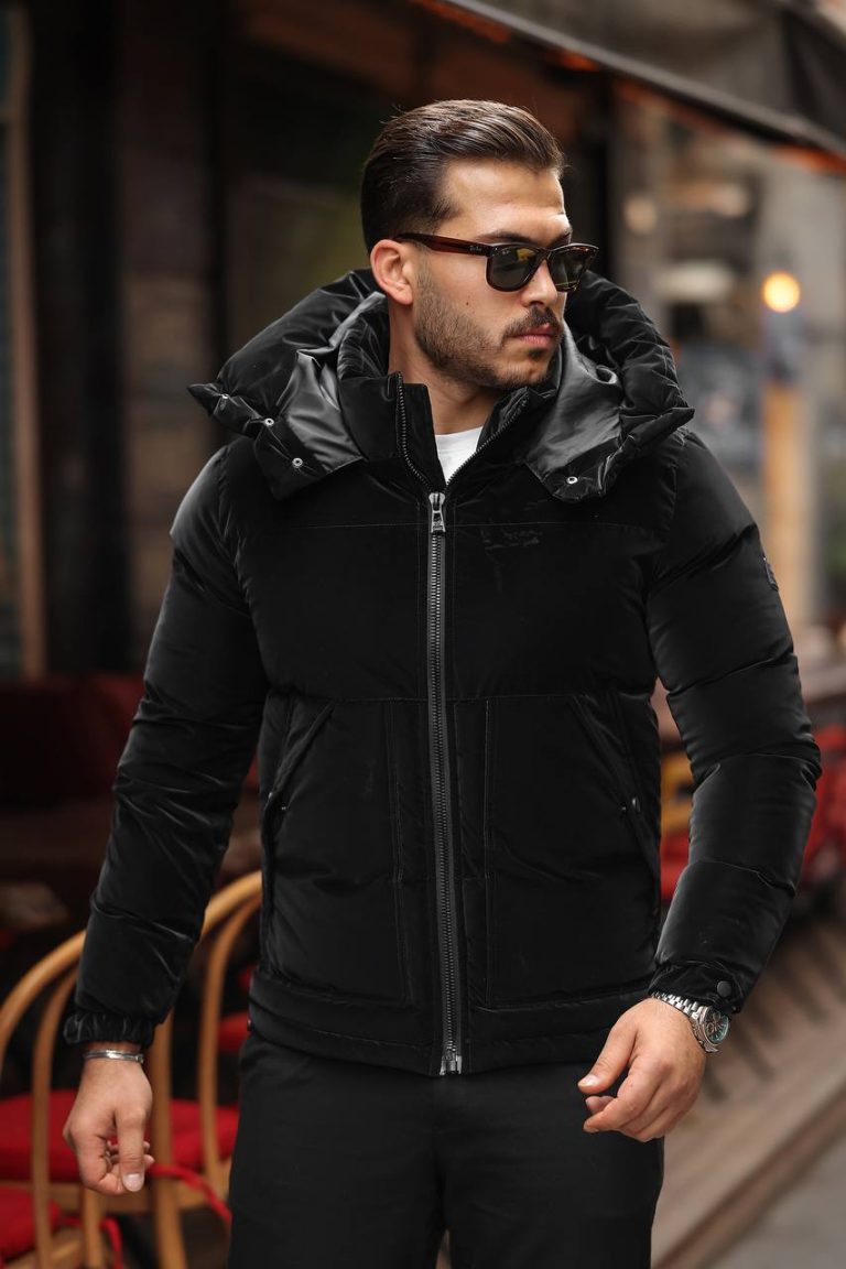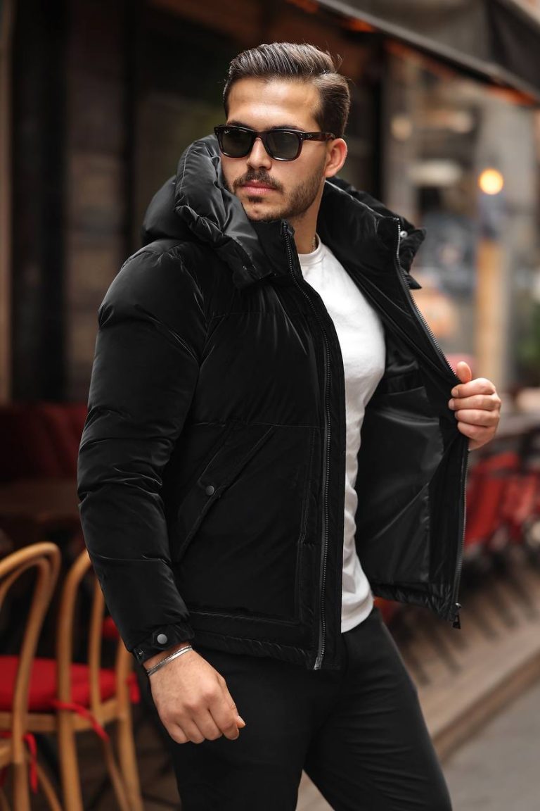 PUFFER JACKET WITH DETACHABLE HOOD – BLACK