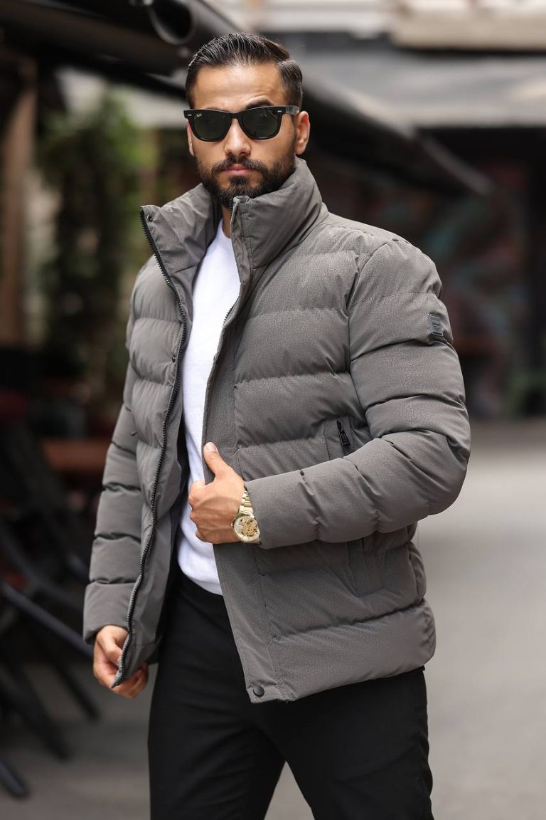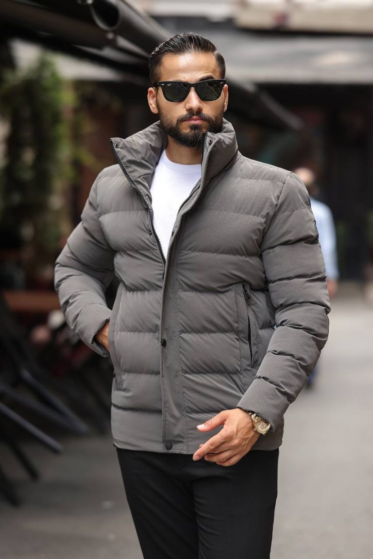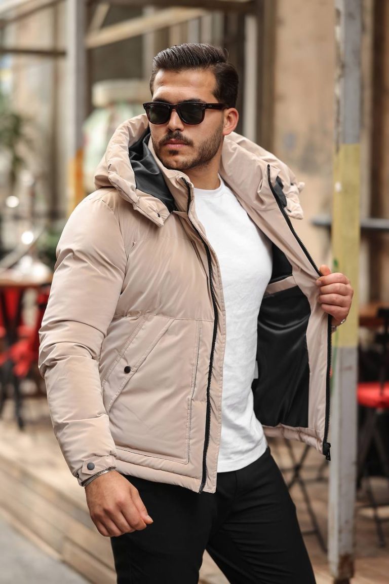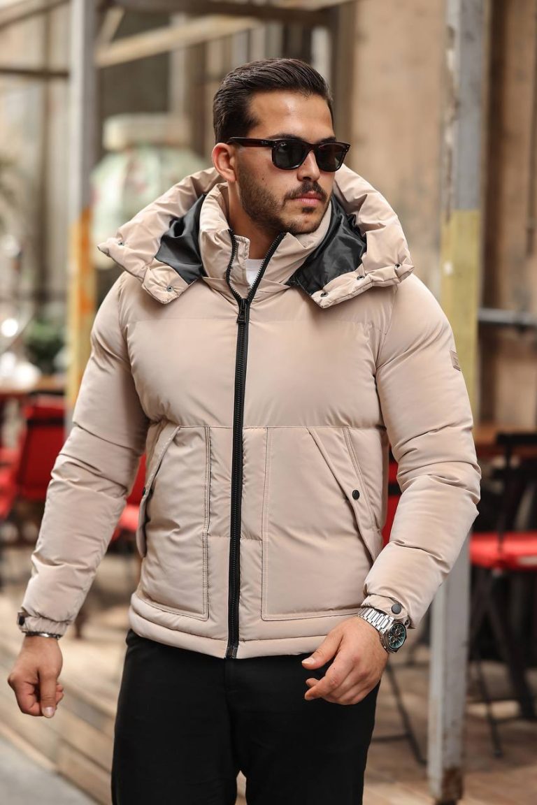 PUFFER JACKET WITH DETACHABLE HOOD – BEIGE