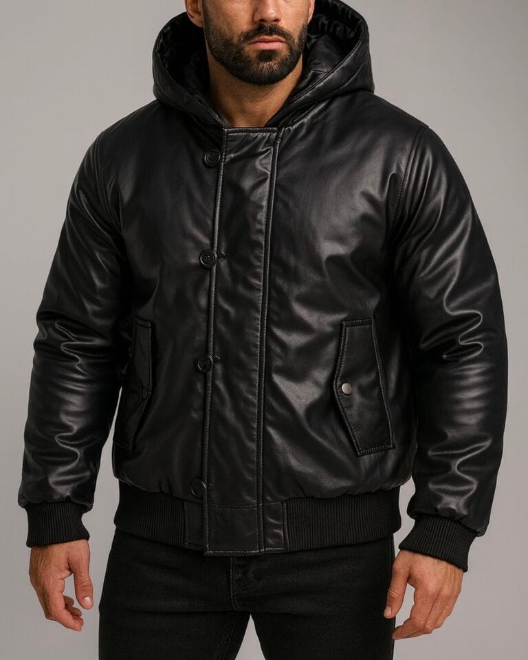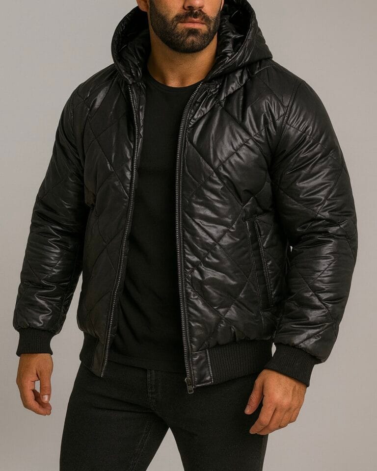 REVERSIBLE LEATHER & FABRIC PUFFER JACKET – BLACK
