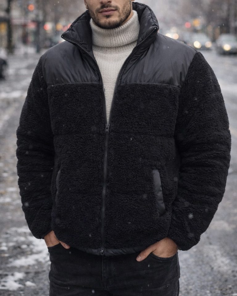 Black Hybrid Sherpa Winter Jacket