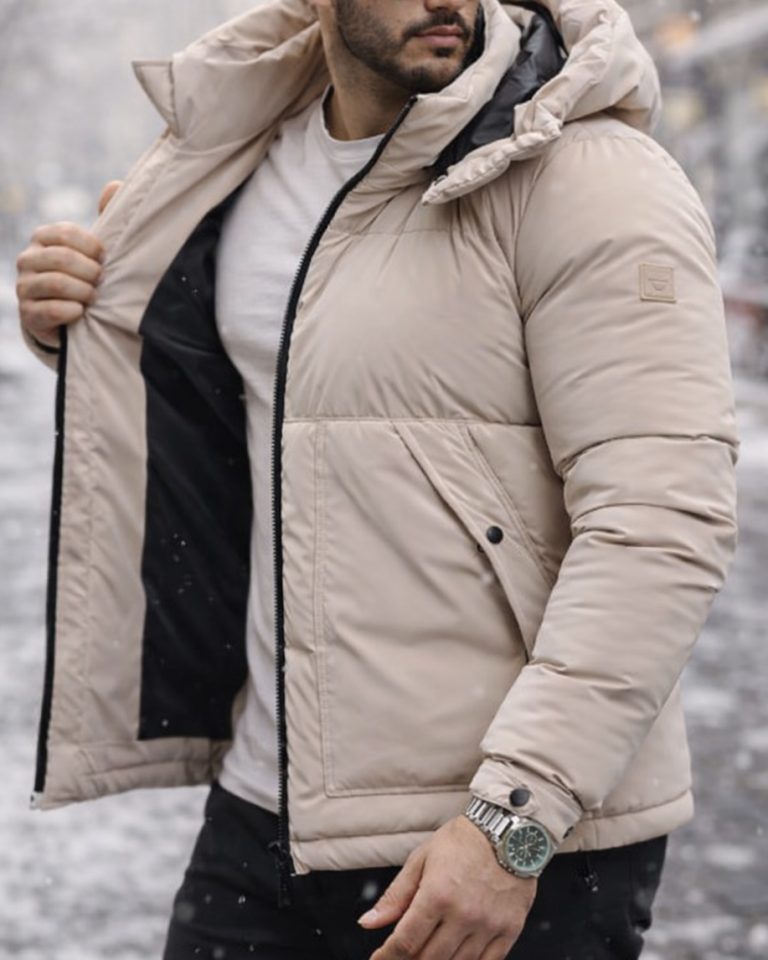 Hooded Puffer Jacket – Soft Beige