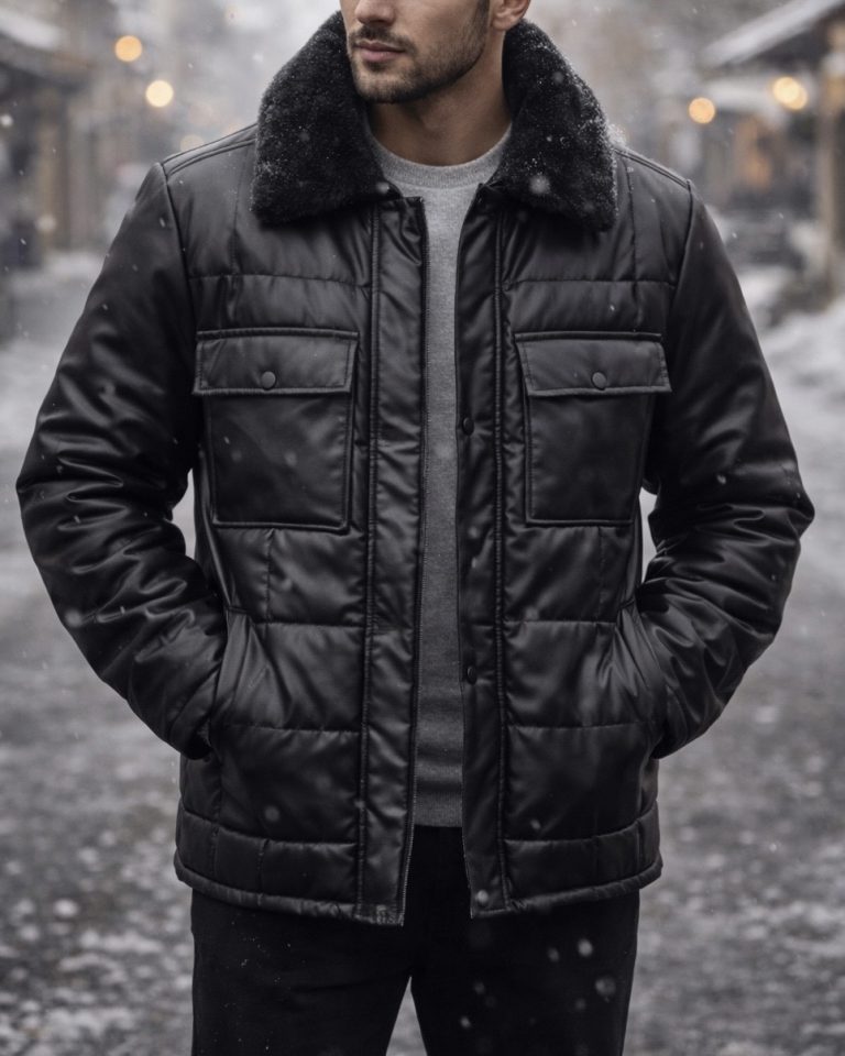 Quilted Puffer Jacket – Midnight Black