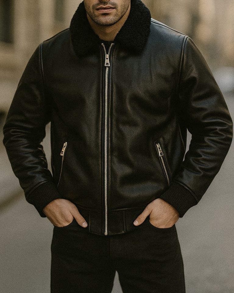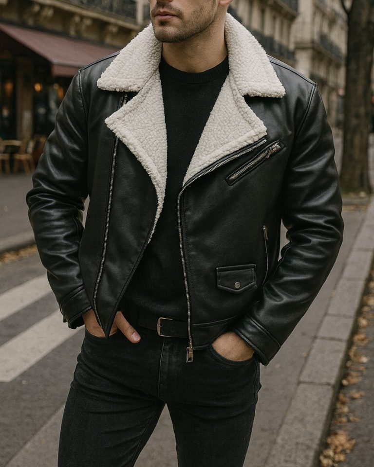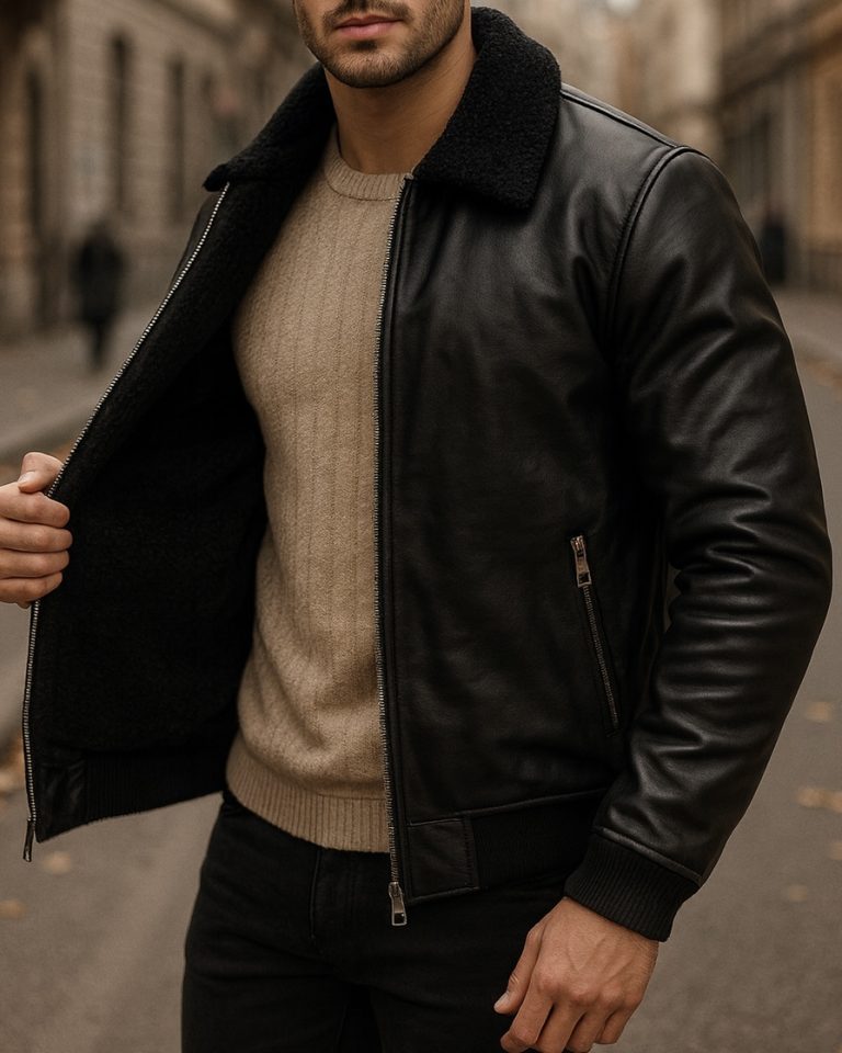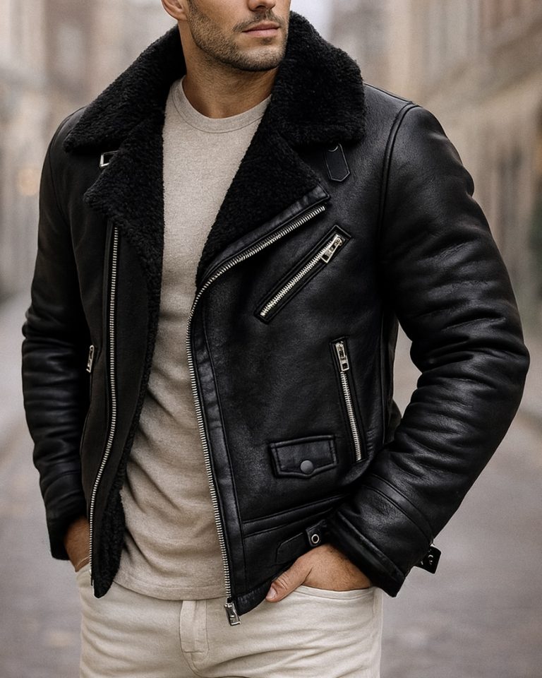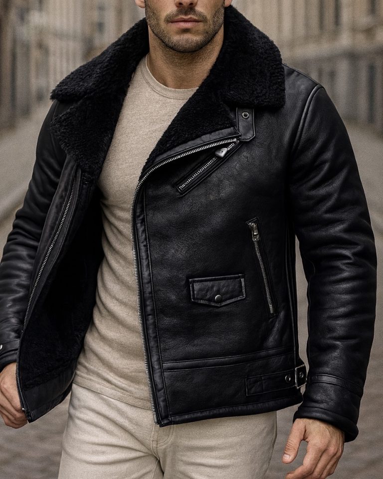 PREMIUM SHEARLING-LINED LEATHER BIKER JACKET – BLACK