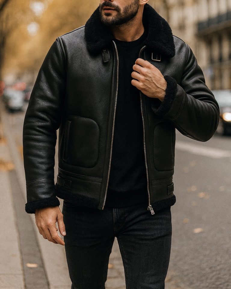 SHEARLING LEATHER JACKET – BLACK
