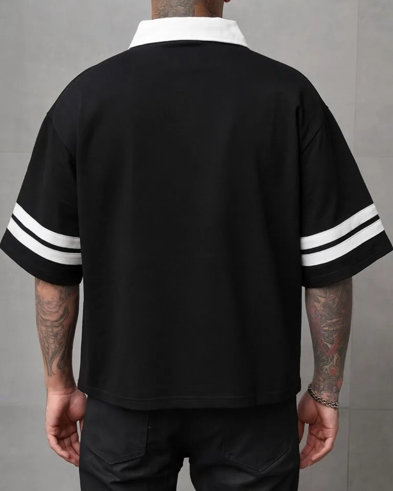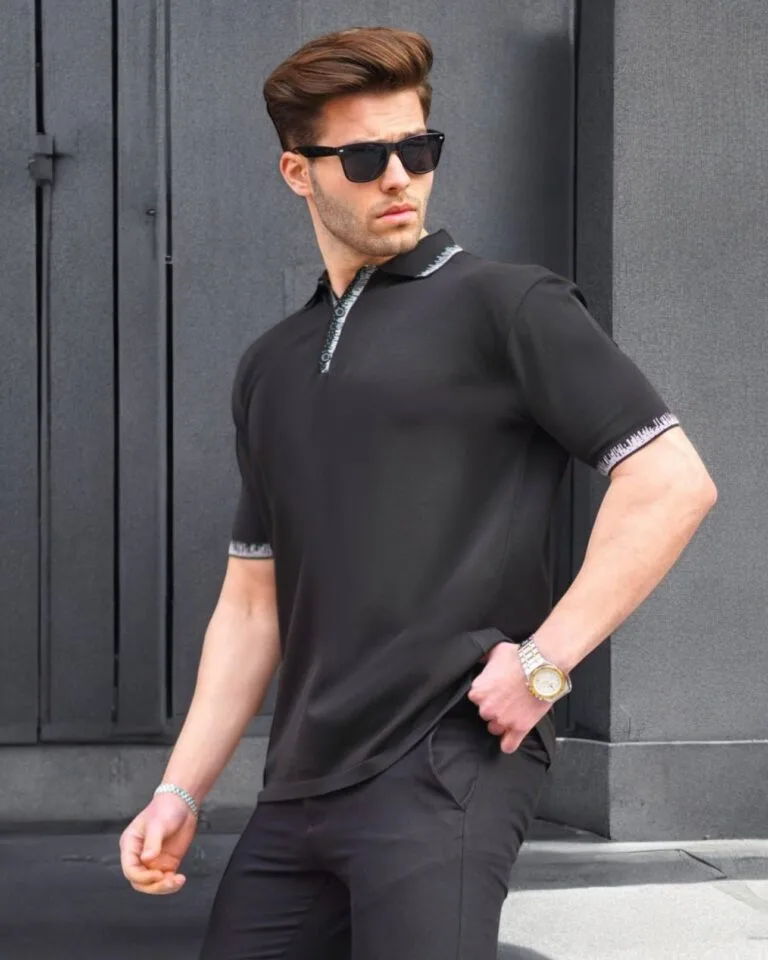 Contrast Collar Polo Shirt – Black