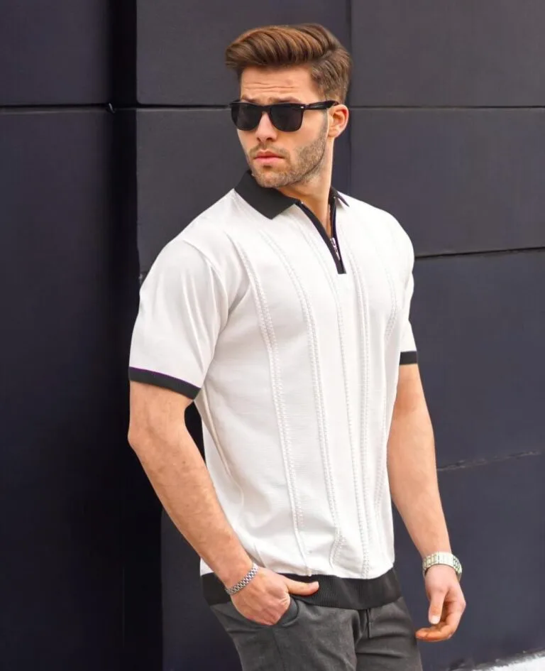 Knitted Zip Polo – White/Black