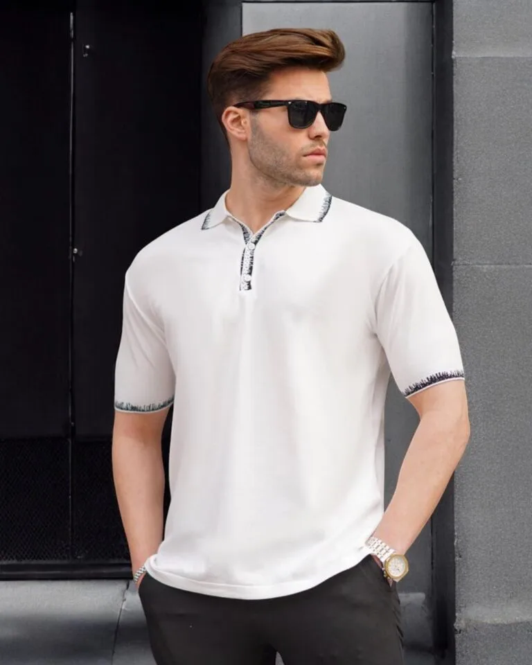 Contrast Collar Polo Shirt – White