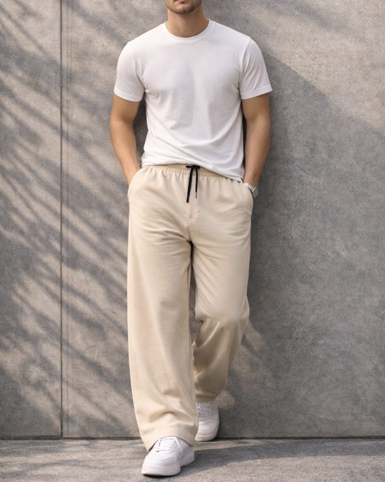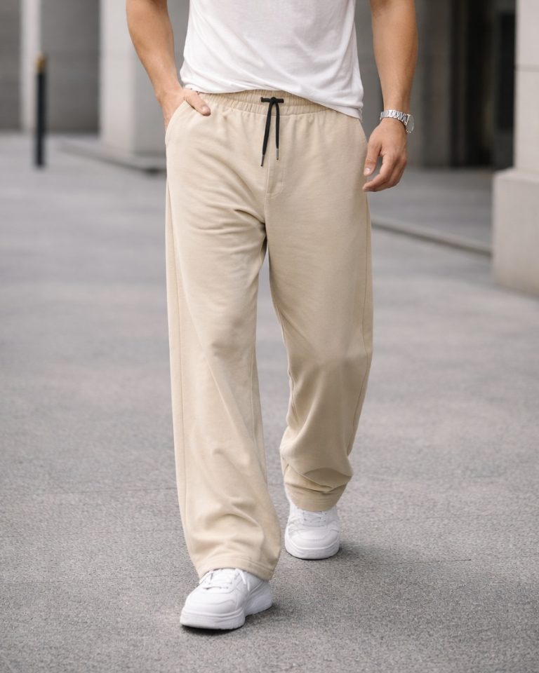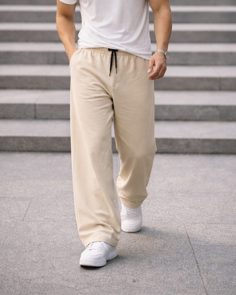 Trenerka të poshtme në ngjyrë beige me dizajn minimalist dhe stil modern. Prerja relaxed ofron rehati maksimale dhe lëvizje natyrale gjatë gjithë ditës, duke i bërë ideale për përditshmëri, udhëtime apo stil casual urban.