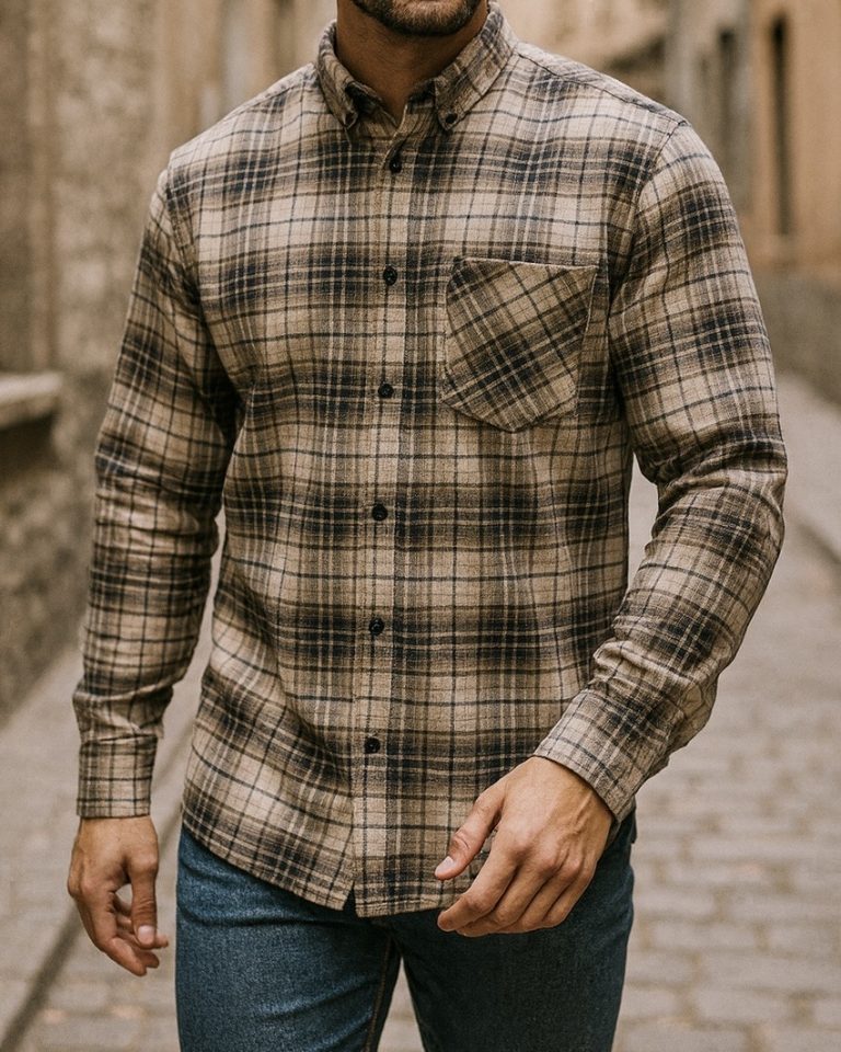 A soft and warm flannel shirt designed for everyday comfort. Features a clean check pattern, button-down collar, and a relaxed fit perfect for layering or wearing on its own.