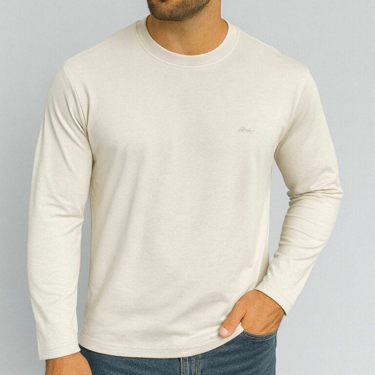 Timeless and neutral. Designed for a refined casual look, this beige long sleeve tee adds warmth and versatility to your wardrobe.