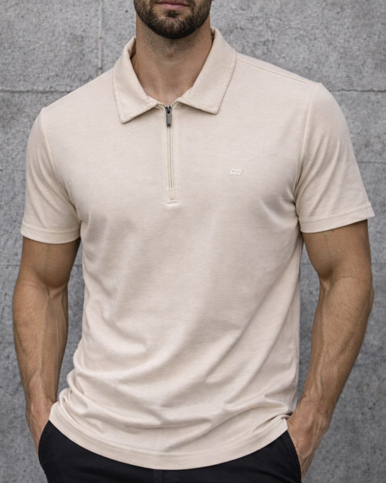 Beige zip polo shirt designed for a clean, refined, and modern look. The neutral beige tone adds a premium feel and makes it easy to style with both casual and smart-casual outfits. Crafted from a soft, comfortable fabric that fits well on the body throughout the day.