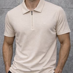Beige zip polo shirt designed for a clean, refined, and modern look. The neutral beige tone adds a premium feel and makes it easy to style with both casual and smart-casual outfits. Crafted from a soft, comfortable fabric that fits well on the body throughout the day.