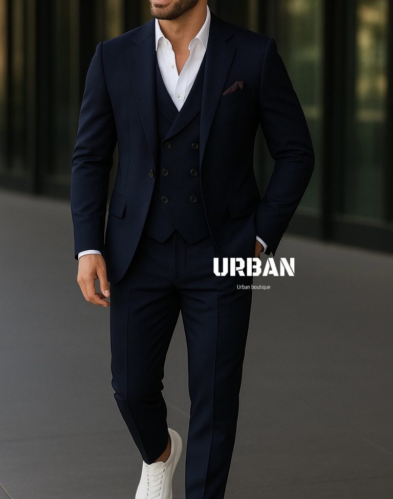 Set kostum i zi klasik, i dizajnuar për meshkuj që kërkojnë elegancë të pastër dhe paraqitje profesionale. Xhaketa me prerje slim, jeleku i kombinuar dhe pantallonat e qepura me saktësi krijojnë një pamje të fuqishme dhe shumë moderne. I përsosur për evente formale, takime biznesi, dasma dhe mbrëmje elegante.