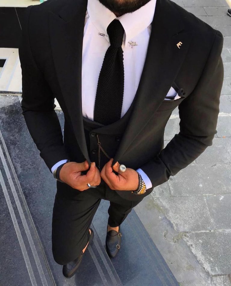 A timeless black suit set crafted for men who value clean elegance and a strong, refined appearance. The slim-fit jacket, matching vest, and tailored trousers create a sophisticated and powerful silhouette. Perfect for formal events, business occasions, weddings, and elegant evening looks.