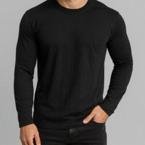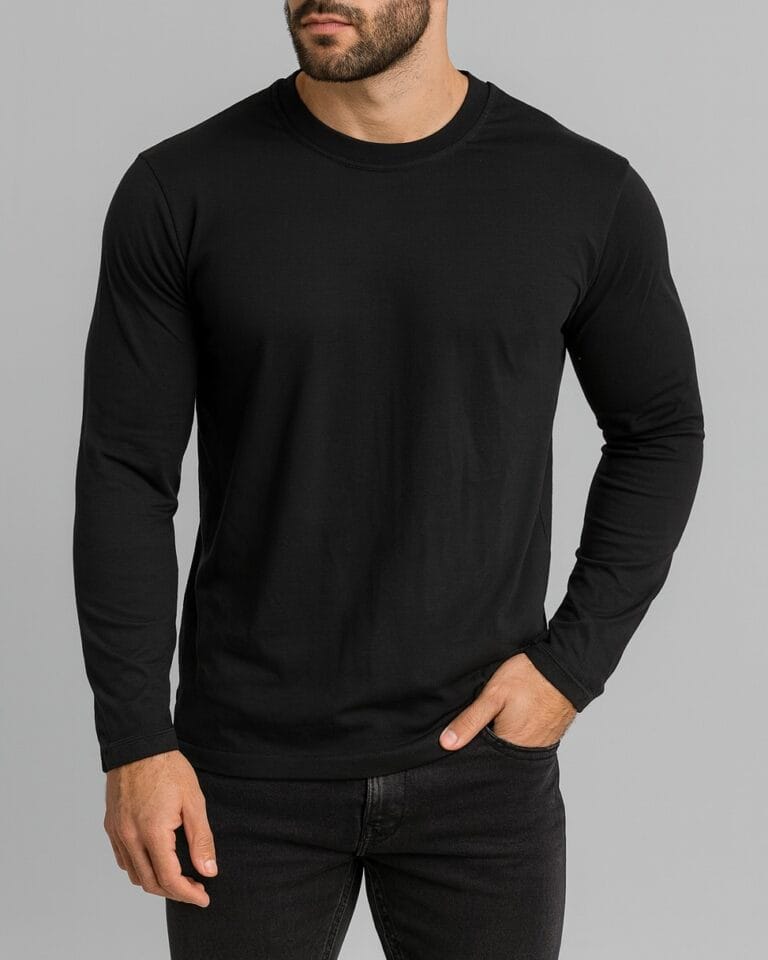 Black slim-fit long sleeve T-shirt with a minimal and versatile design. Perfect for pairing with jackets or casual wear.