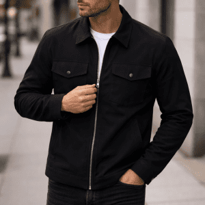 A modern zip-up jacket designed for everyday urban wear. Its clean silhouette and functional details create a refined look that transitions easily between casual and smart-casual styles. Made from soft textile fabric, it offers comfort, flexibility, and all-day wearability.