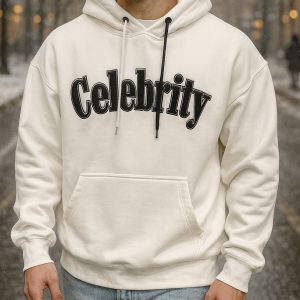 A clean and modern hoodie featuring the iconic Celebrity embroidery. The cream tone gives a soft, premium look that fits perfectly with any outfit. Warm, comfortable, and ideal for streetwear lovers who want a standout everyday piece.