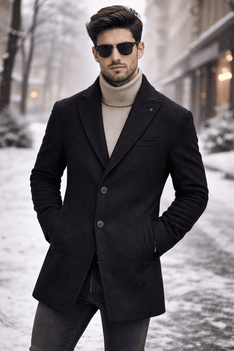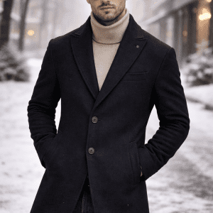 A timeless wool coat designed for modern men who appreciate clean lines, elegance, and everyday versatility. Crafted in a deep Black tone, this coat offers a refined appearance that easily transitions from casual city wear to more formal occasions.