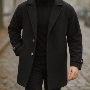 A sleek black wool-blend coat built for versatility and style. Minimal, warm, and refined — a must-have winter essential.