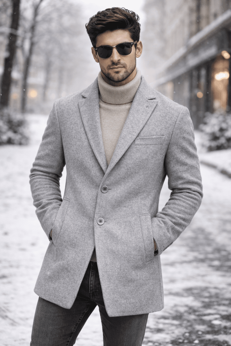 The structured tailoring follows the natural shape of the body, creating a sharp silhouette while maintaining comfort and flexibility. Ideal for winter wear, city styling, or polished daily looks.