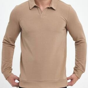A refined sweatshirt featuring a structured collar and a clean silhouette. Crafted from soft stretch cotton blend for comfort and a sophisticated casual look.