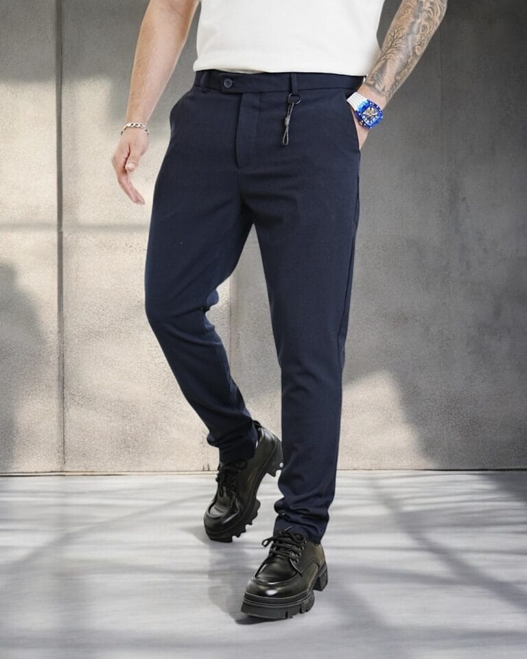 Tailored smart pants in dark navy, designed for timeless sophistication and versatility. Perfect balance between structure and comfort.
