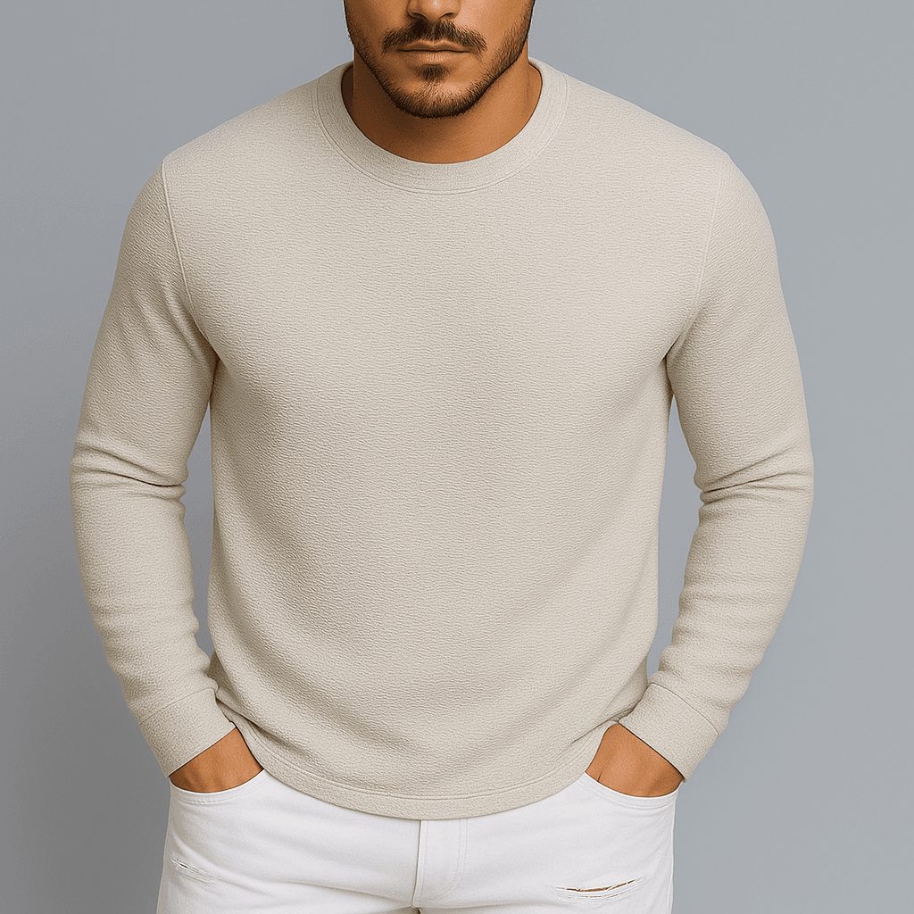 A minimalist beige sweatshirt with subtle distressed details for a vintage-inspired finish. Made from premium cotton with ribbed cuffs and hem — perfect for layering or clean casual looks.
