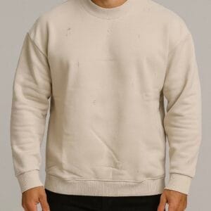 DISTRESSED BASIC SWEATSHIRT – BEIGE
