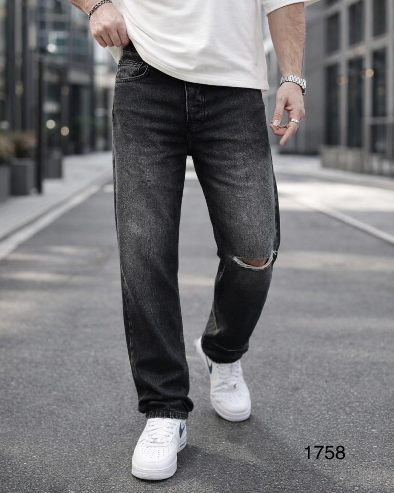 Pantolla jeans në ngjyrë gri të errët me efekt washed dhe detaj të çarë në pjesën e gjurit që i jep një stil modern dhe urban. Dizajni i pastër me finish pak të zbehur krijon një look premium që kombinohet lehtë për përditshmëri apo dalje.