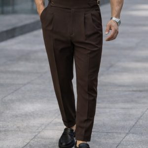 Double Pleat Side Adjuster Trousers – Espresso Brown - Urban Boutique