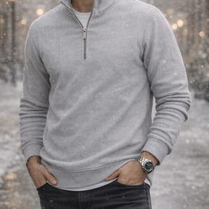 Be the first to review “Essential Luxe Half-Zip Knit Sweater – Light Grey”