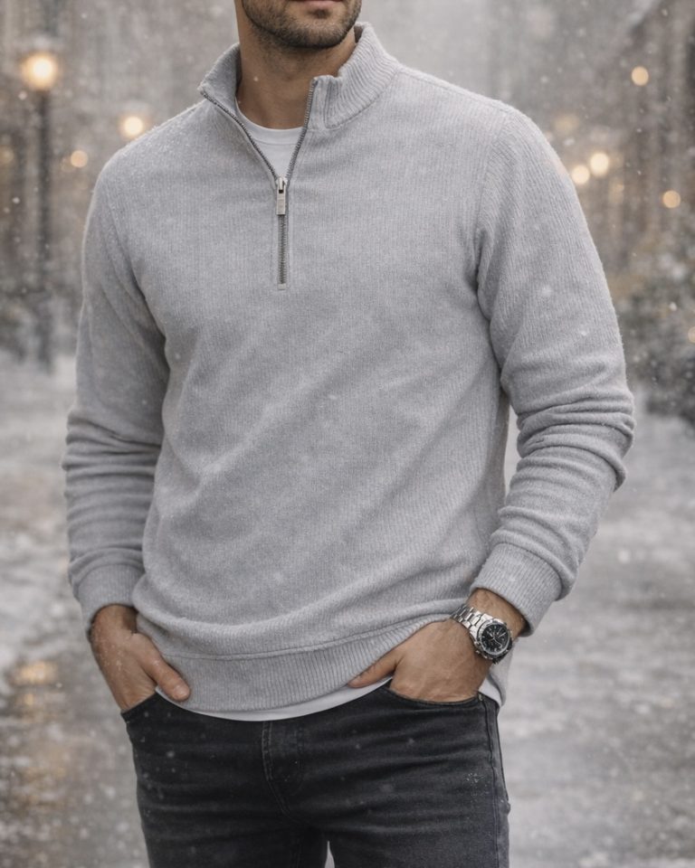 Essential Luxe Half-Zip Knit Sweater – Light Grey - Urban Boutique