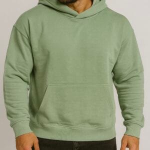 A light sage hoodie offering a clean and contemporary aesthetic. Crafted from a premium cotton blend with a soft inner texture for everyday wear.