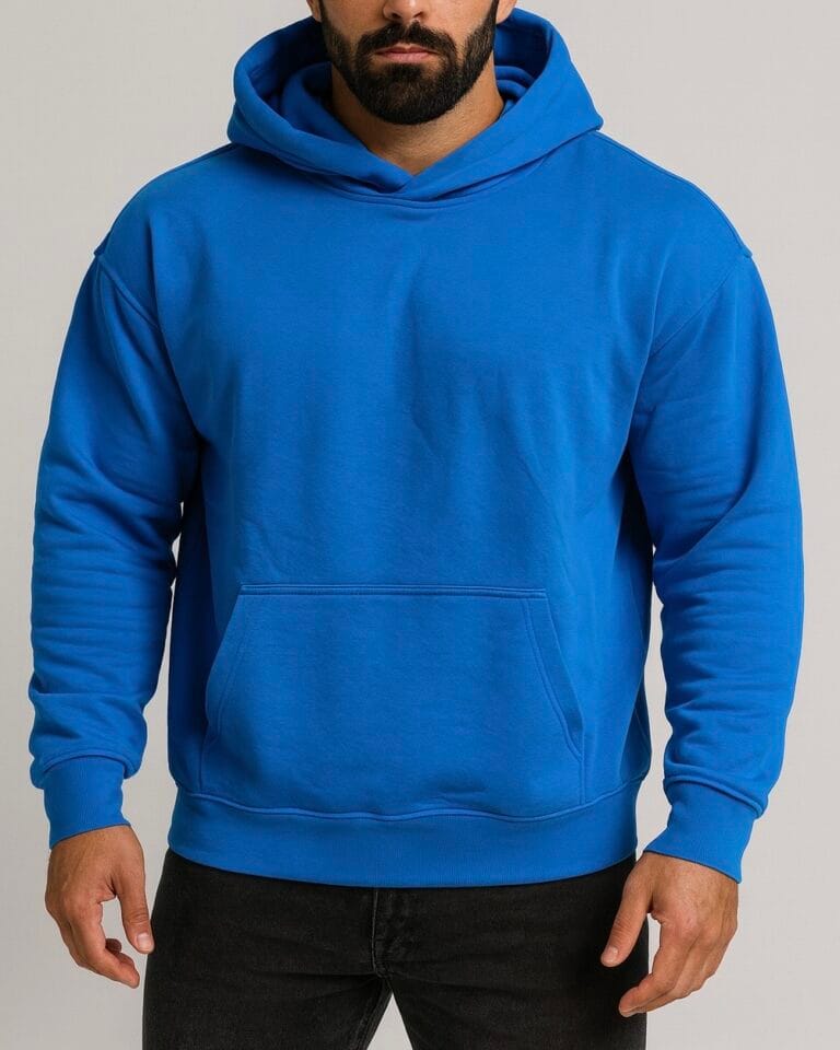A vibrant royal blue hoodie crafted from soft heavyweight cotton. Combines structure and comfort for a bold streetwear statement.