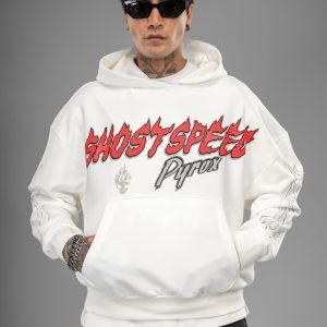 A bold oversized hoodie in milk-white, designed with high-impact front and back graphics. With its dropped shoulders, premium cotton blend, and street-inspired artwork, this piece delivers a standout look for everyday urban style.