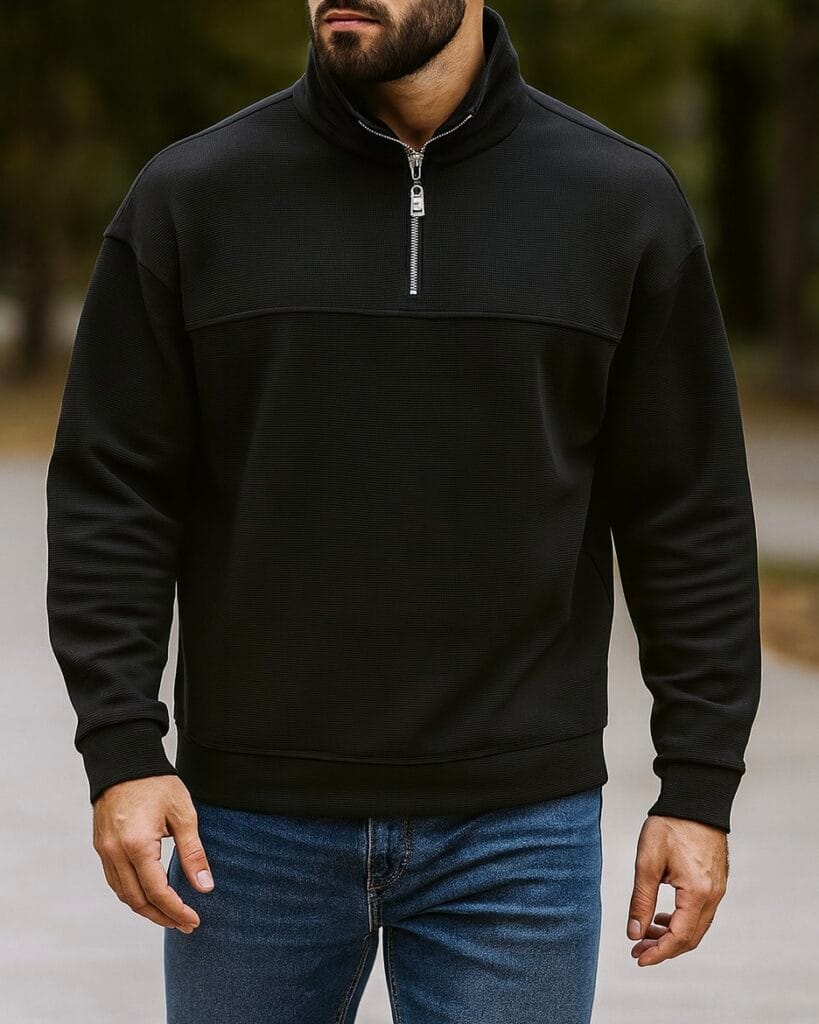 • Half-zip front closure