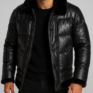 A sleek, cold-weather essential crafted from premium leather-look fabric with soft faux fur details. Designed with full front zip and button closure, the jacket offers warmth, structure, and a touch of luxury for the modern urban style.