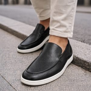 Slip-on loafers crafted from premium leather with a clean and minimalist design. The black leather finish gives this model a refined and modern look, making it easy to pair with smart-casual outfits and everyday styles. A practical choice that balances elegance and daily comfort.